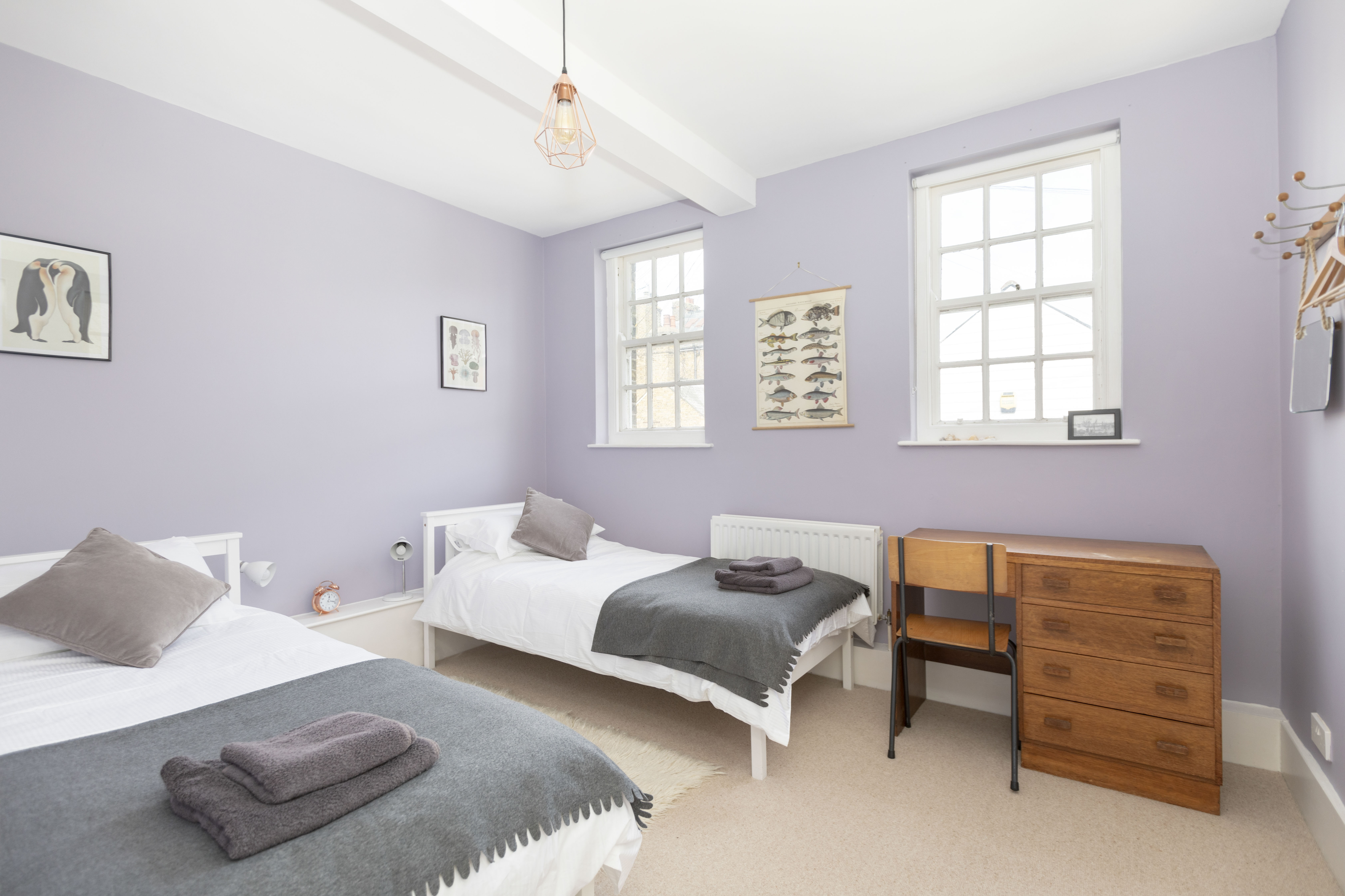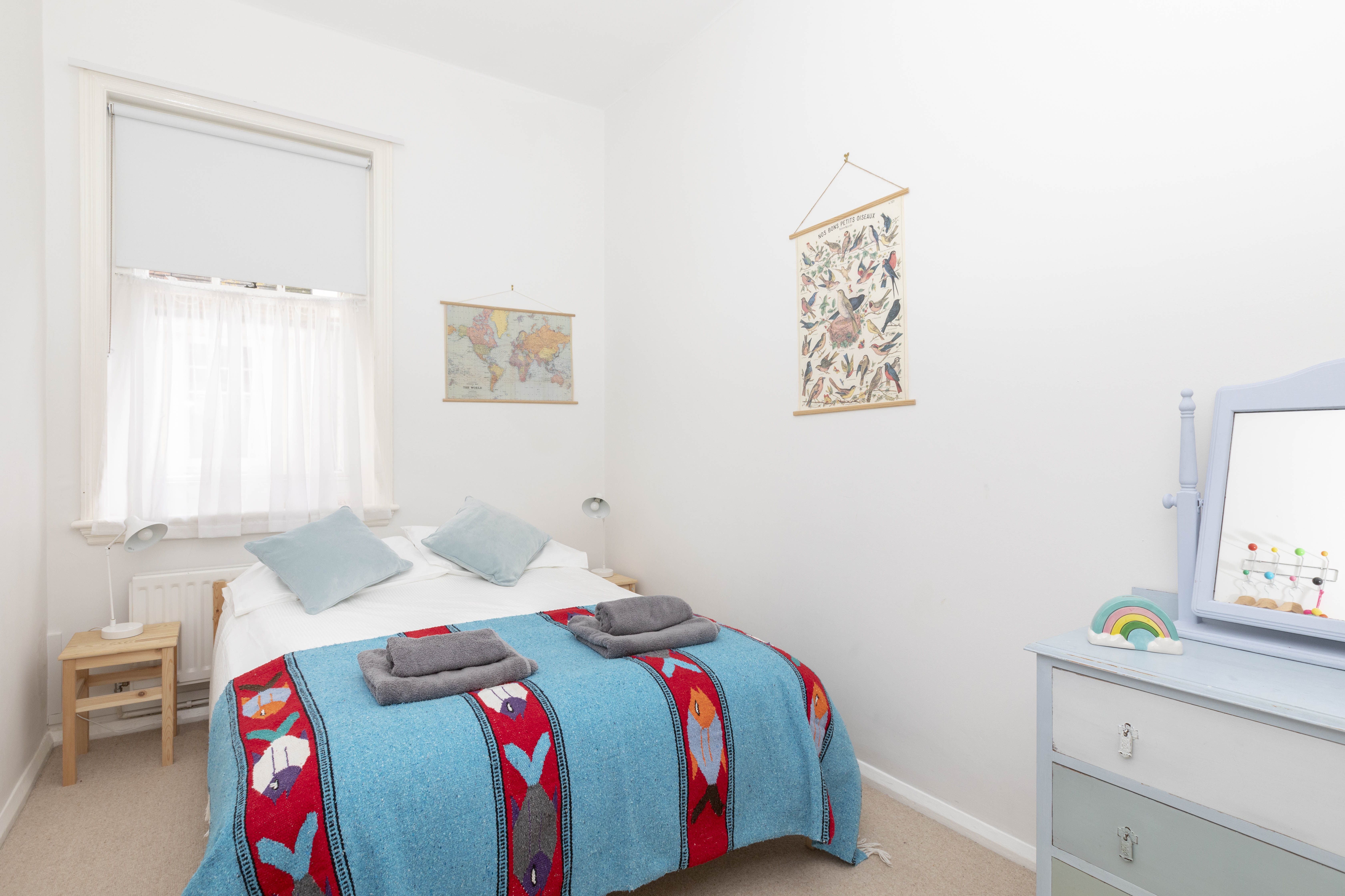 The space: three comfortable bedrooms (two doubles and one twin), a spacious living room with original wooden floorboards, cool artworks and retro furniture, and a huge kitchen diner with dishwasher for sociable family meals. Victorian-style family bathroom and additional downstairs cloakroom/toilet. There's a cosy reading nook on the first floor.